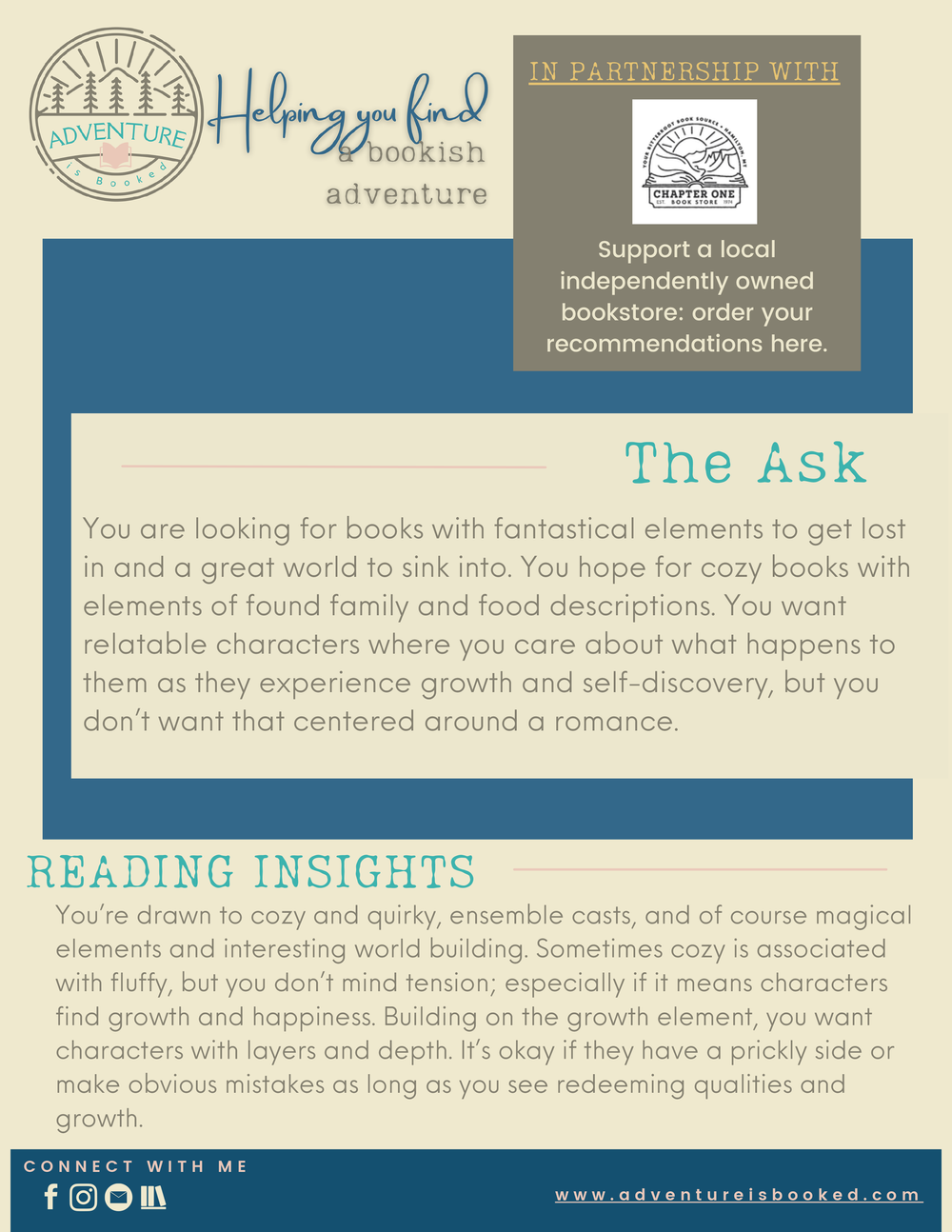 Adventure Is Booked is a book recommendation service to help readers find their next reading adventure. Perfect for gifting yourself or the book lovers in your life.
