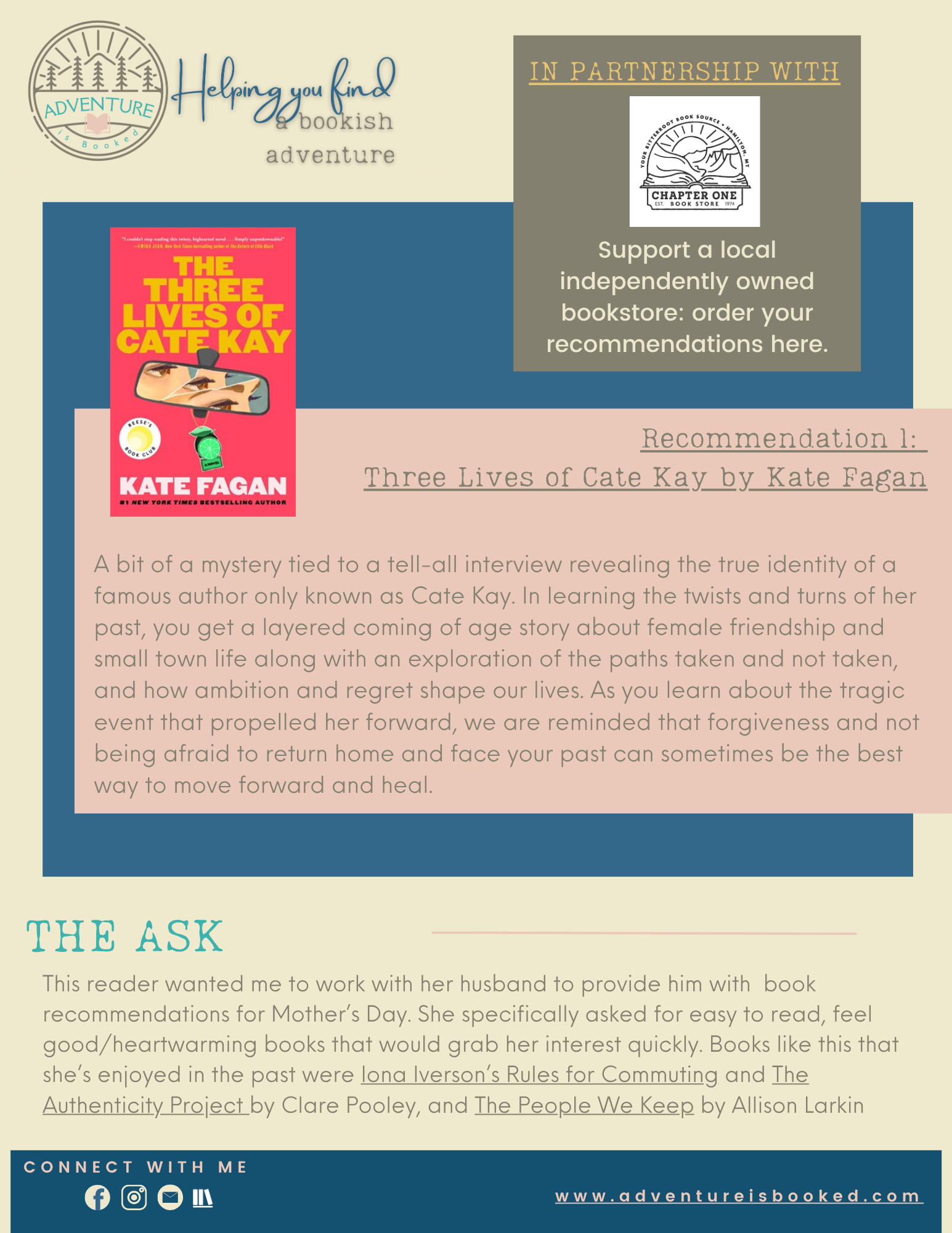 Recipients can apply their gift card to get a curated list of 5 book recommendations based on their form feedback and a 45- 60 minute phone or video call.